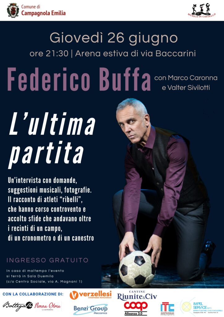 L'evento dell'estate campagnolese all'interno della rassegna Musica in Castello: il giornalista, telecronista sportivo e scrittore Federico Buffa protagonista di una intervista teatrale, condotta da Marco Caronna, con l'accompagnamento musicale di Valter Sivilotti.