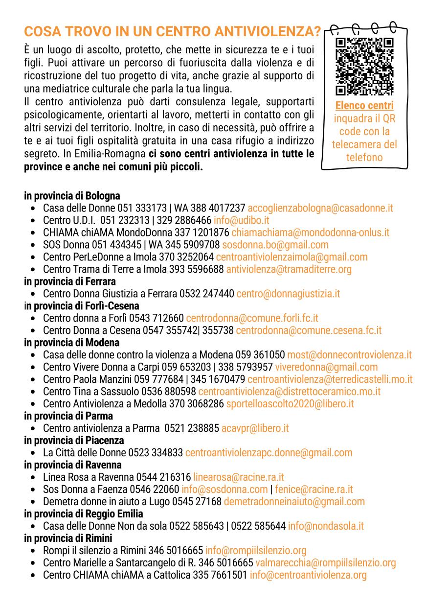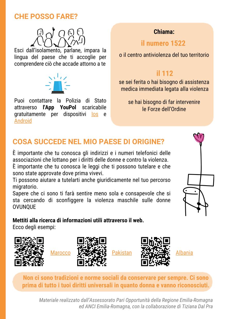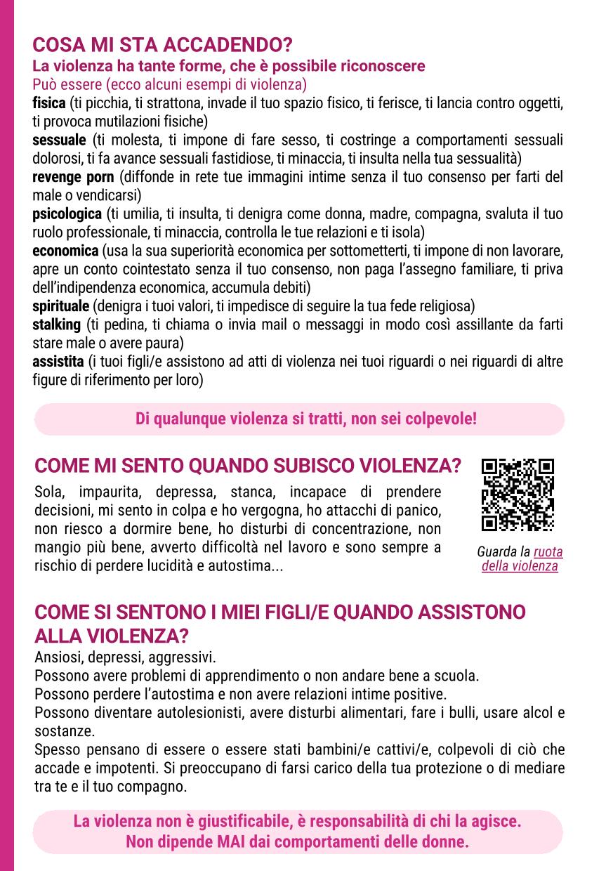 Un dépliant in sette lingue utile alle donne per prendere consapevolezza del fenomeno della violenza e che fornisce, al contempo, le indicazioni per accedere ai servizi in grado di dare assistenza e supporto
