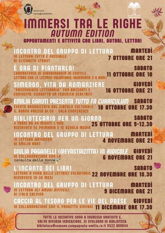 Il calendario degli appuntamenti con libri, autori, lettori per l'autunno.