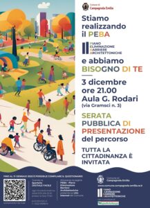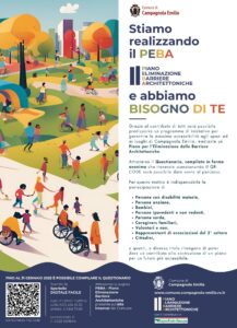 Inizia il percorso pubblico che porterà alla redazione del PEBA - il Piano Eliminazione Barriere Architettoniche: un programma di iniziative per garantire la massima accessibilità agli spazi ed ai luoghi di Campagnola Emilia.