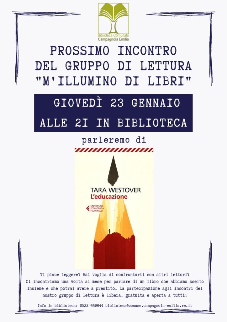 Il libro scelto per il primo appuntamento del 2025 è L'educazione, di Tara Westover, Feltrinelli edizioni.