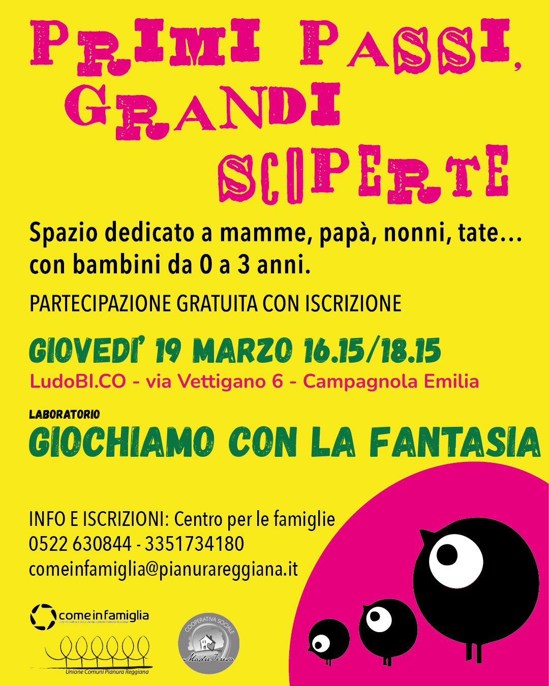 Il Centro per le Famiglie invita bimbi dai 0 ai 3 anni al laboratorio "Giochiamo con la fantasia" in LudoBi.CO